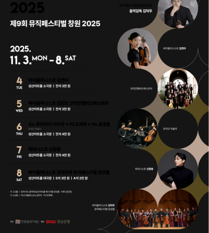 이번 행사는 ‘클래식의 도시, 창원’을 주제로 수준 높은 공연과 다채로운 아티스트의 무대를 선보이며, 시민과 관객 모두에게 깊은 울림을 전할 예정입니다.
